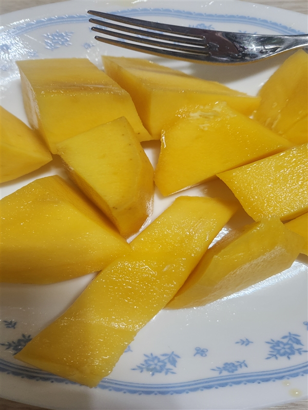 얼마전 다낭에서 먹었던 망고가 생각나 구매 했어요.숙성이 안 된 상태라 3일정도 놓아 두었는데 말랑해지지 않더라구요.그래서 온열찜질기 위에 수건 깔고 익혀 더니 완전 잘 숙성 되었어요. 색이 예쁘게 바뀌고 말랑해져서 먹었더니 향도 좋고 달아요.울애들도 맛있다고 더 사래요.재구매하러 왔다가 후기 남기고 갑니다.