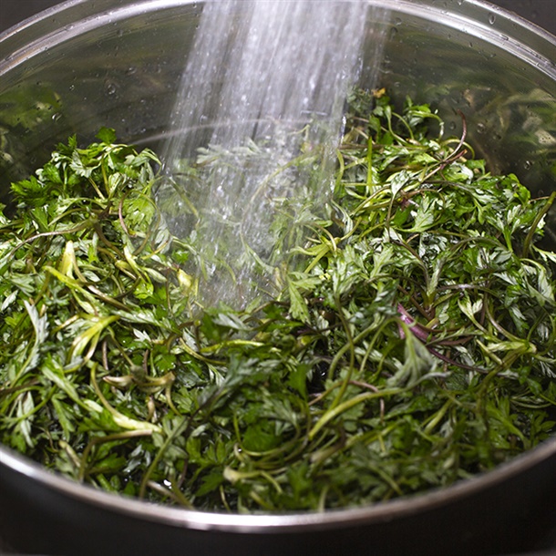 쑥을 물에 10~20분 정도 담궈