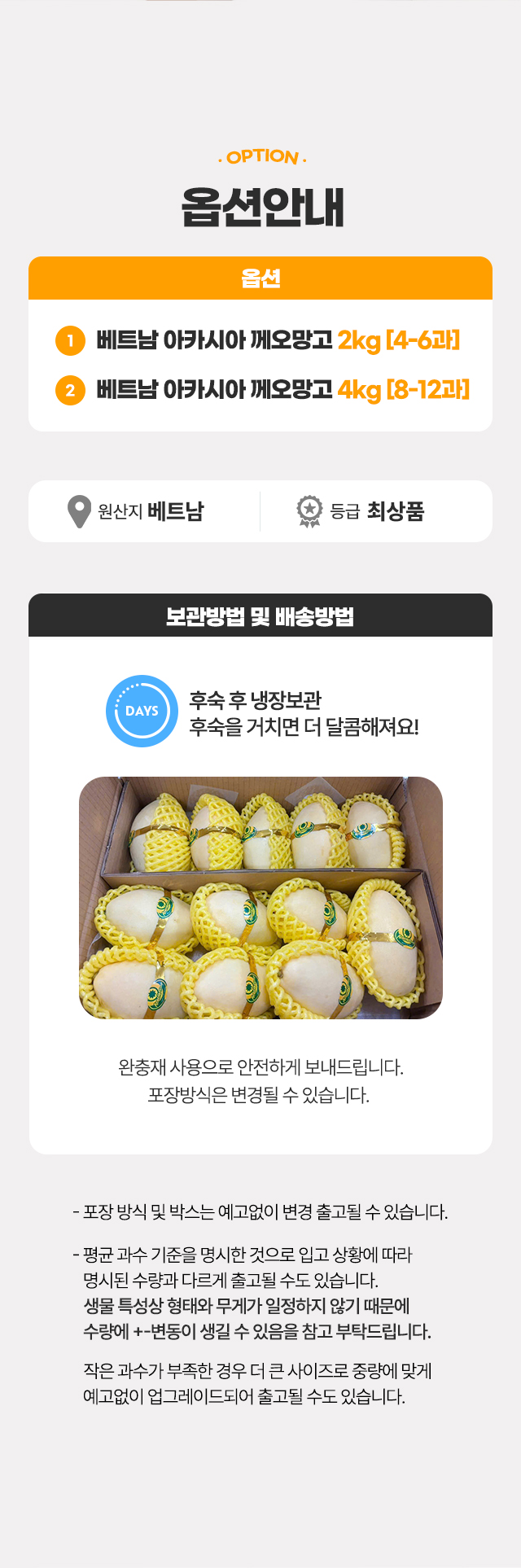 · 배송지연 지역: 전라남도, 제주도는 폭설로 인해 1~3일 이상 배송이 지연될 수 있습니다.