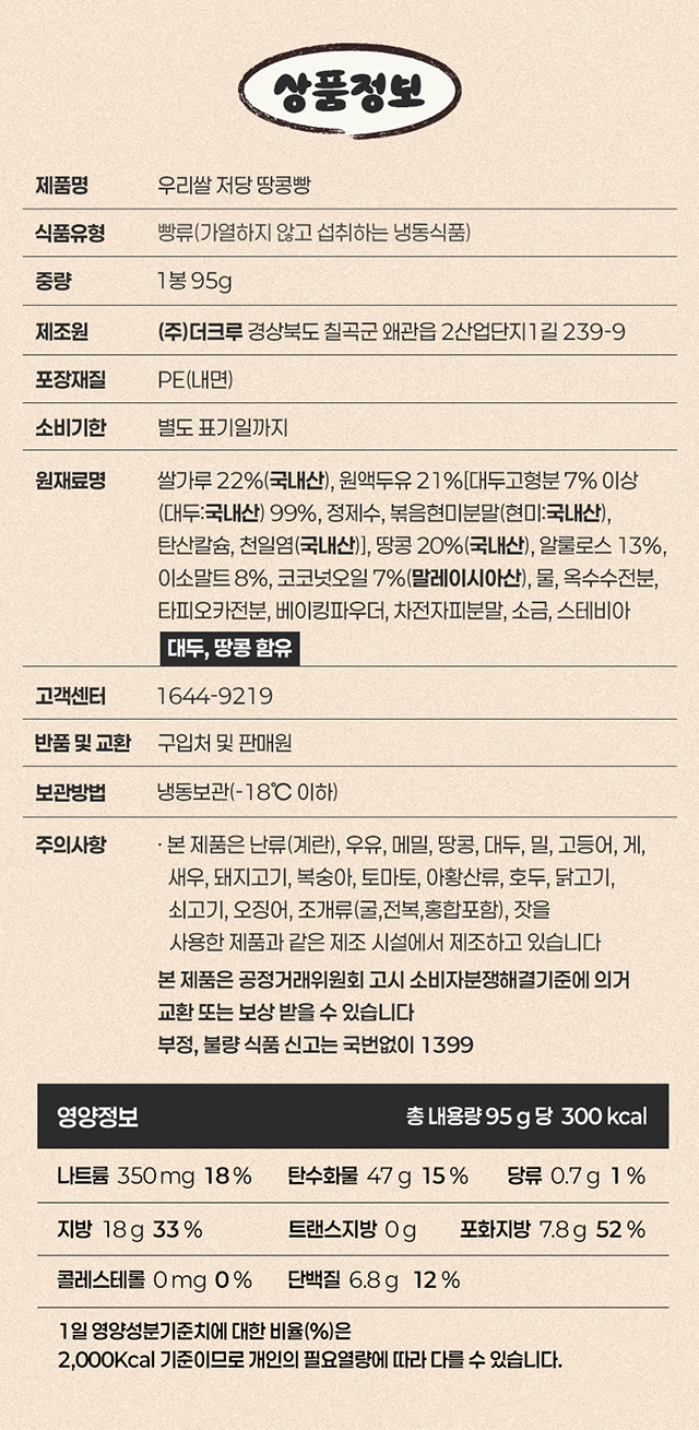 우리쌀로 만든 저당 땅콩빵