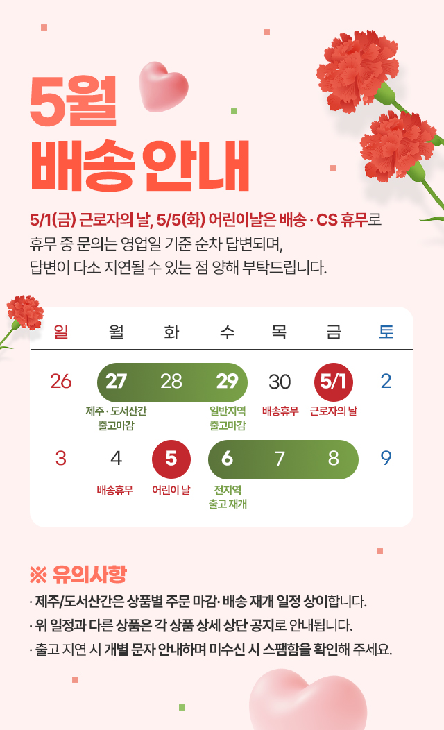· 배송비 : 3,500원(1개 마다 기본배송비 반복 부과)