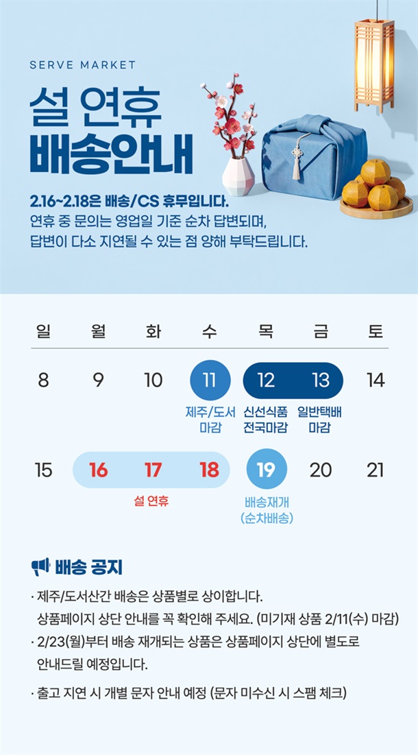 · 평일 주문일 기준 평균 1~3일 내 출고됩니다.(주문폭주 시 지연문자 발송)