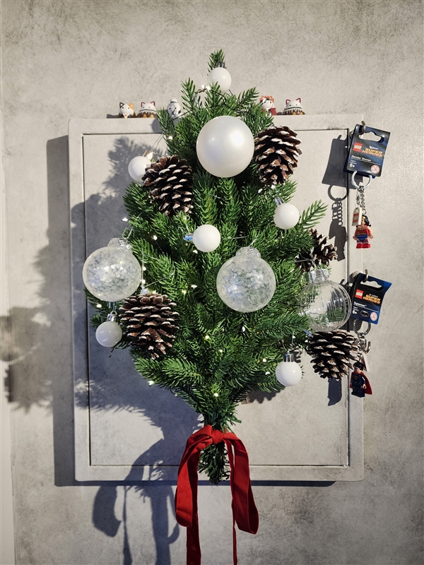 레드트리가 오래 기다려야해서 화이트트리 구매했는데 더 마음에 들어요! 집 분위기도 잘 어울리고 빨간색 털실로 리본 포인트 추가해서 완성했어요~!