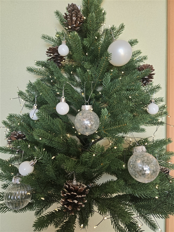 촌스럽지않은 적당히 짙은 초록색 나무이고, 함께 온 오너먼트도 고급져요~~ 솔방울도 큼직하고 퀄리티 좋아요!