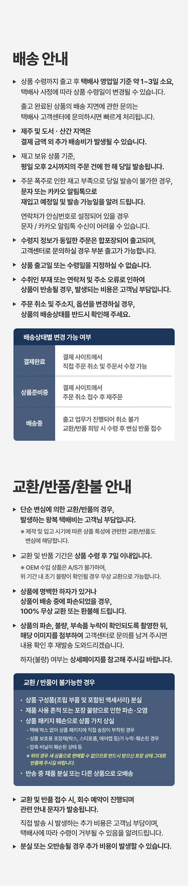 · 평일 주문일 기준 평균 1~3일 내 출고됩니다.(주문폭주/재고부족 시 개별문자 발송)
