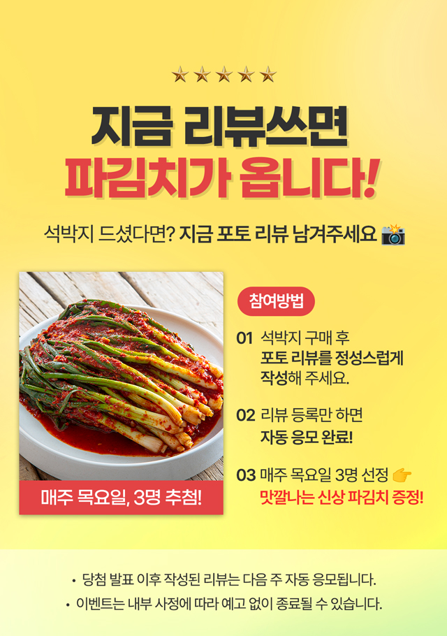 · ♥오픈행사♥ 목요일 베스트 포토리뷰 3분 선정! 여수 파김치 1kg 증정♥